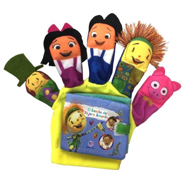 - Con cinco pequeños personajes diferentes en forma de dedo, muy coloridos